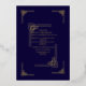 Celebre su día especial con esta exquisita invitación de boda azul marino con detalles de lámina de oro brillantes. Perfecta para parejas que buscan un diseño formal, elegante y atemporal, esta invitación combina tipografía clásica con una maquetación sofisticada. Ideal para bodas de lujo, incluye secciones claras para nombres, fecha, hora y lugar, todas ellas resaltadas en oro sobre un fondo azul marino profundo.