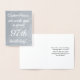 Este elegante diseño de tarjetas de felicitación de cumpleaños de Relieve metalizado plateado incluye un mensaje como "CustomName, le deseamos un gran cumpleaños 97!" en la parte delantera, donde se puede personalizar el nombre y el número de cumpleaños. El interior incluye un mensaje de cumpleaños personalizado. Una tarjeta de cumpleaños como esta podría ser usada para desear un feliz cumpleaños a alguien.