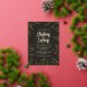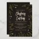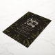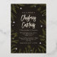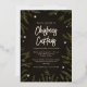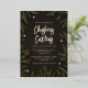 Esta elegante invitación del Partido de los Navidades tiene un fondo negro y gris en textura, ramas de abetos verdes ilustradas y verdaderas estrellas brillantes de Relieve metalizado dorado. Esto sería perfecto para un Fiesta de cena de Navidades o un cóctel para adultos o para cualquier fiesta de familia o Navidades en el lugar de trabajo.