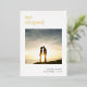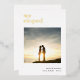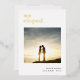 Invitación elegida Foto Relieve metalizado de lujo Real en su elección de oro, oro rosa o plata para el encabezado. Elegante y totalmente personalizable, para que tus amigos sepan de tu salida junto con un recuerdo de fotos de tu día, con este diseño mínimo con We Eloped, debajo del cual añades tu foto favorita de tu boda, y personalizas tus nombres, y fecha y lugar de tu ceremonia. En la parte posterior, puede personalizar fácilmente con su mensaje de invitación.