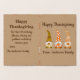 Esta es una linda tarjeta personalizada de bienvenida de Acción de Gracias con tres divertidos gnomos que sostienen calabaza, hoja de otoño y bellota. Tiene un nombre de familia personalizado que usted puede cambiar fácilmente al nombre de su propia familia y con deseos que usted puede personalizar para hacerlo suyo. Es divertido y simple tarjeta de saludo para el Día de Acción de Gracias.