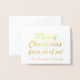 Este personalizable de Relieve metalizado de oro Navidades de tarjetas de felicitación presenta el mensaje "¡Feliz Navidad de todos nosotros!" en el frente, junto con un mensaje personalizado en el interior. Se podría mandar a amigos y familiares en celebración de Navidades.