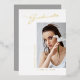 Este verdadero Relieve metalizado, moderno y elegante tarjeta de invitación de graduación, presenta elementos de diseño de texto moderno mezclado con un elegante guión de caligrafía. La foto horizontal de los graduados se coloca artísticamente en la parte delantera de la tarjeta, mientras que la parte posterior ofrece espacios de texto personalizados para información sobre la graduación y el viaje futuro. Los fondos son blancos en la parte delantera y gris plateado en la parte posterior o fácilmente los personalizares a los colores elegidos. Para ver más artículos como este, visita mi tienda aquí en "www.Zazzle.com/LakeViewCardCo". ¡Gracias