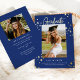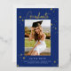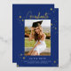 Esta moderna invitación de graduación presenta una foto vertical y estrellas dibujadas a mano con un guión moderno "Graduado" en Relieve metalizado dorado sobre un brillante *fondo azul ultramarino. En la parte de atrás hay otro texto de foto e invitación. Puede editar el texto para que sea un mensaje personal o los planes del graduado si no tiene un fiesta. También puede borrar la foto y el texto si lo desea. *Todos los colores de este diseño son personalizable!
