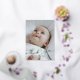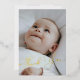 Elegante tarjeta de agradecimiento de invitación para bebés con letras que dicen "gracias" encima de la foto de tu recién nacido. Funciona mejor con una imagen horizontal.