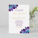 Invitación a la boda de orquídeas Dendrobium con dorado, morado y azul turquesa. Diseño sencillo de invitación a la boda que presenta una hermosa variedad de orquídeas llamada dendrobio azul. Es de color verde azulado/turquesa y violeta y púrpura real. Los nombres de la novia y del novio y la redacción de la recepción son de Relieve metalizado oro real. Una gran variedad de flores para el color boda pavo real.