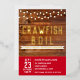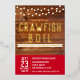 Este diseño rústico de color marrón rojo presenta un fondo rústico de madera con luces de cuerda y gráficos de cangrejos de río. Esta invitación es excelente para las fiestas de compromiso, pero el texto también se puede personalizar para cumpleaños, bodas, reuniones familiares y cualquier otro fiesta en el que puedas tener una langosta, cangrejo de río, cangrejo de cangrejo o hierba de langosta. ¡Disfruta de tus langostas y mariscos!