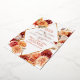 Esta elegante invitación presenta flores pintadas con acuarela en los colores perfectos de otoño de naranja, rosa, amarillo, rojo y rosa con acentos de lámina dorada. Esto es perfecto para estilos de boda clásicos, contemporáneos y vintage para la temporada de otoño. Explore la selección de tarjetas de respuesta, letreros y más que se coordinan.