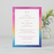 Esta invitación de boda presenta un diseño moderno y minimalista con un borde de gradiente vibrante que pasa de rosa a azul, enmarcando un área central blanca limpia. La tipografía combina fuentes elegantes serif y script, creando una atmósfera sofisticada y alegre perfecta para celebrar el amor. Los campos de texto personalizables permiten la personalización mientras mantienen el tono formal e invitador de la invitación. Ideal para parejas que buscan un look elegante y contemporáneo para su día especial.