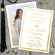 Comparte la alegría de una graduación de secundaria o universitaria con elegantes invitaciones personalizados de Relieve metalizado blanco y oro. (IMAGEN PLACEMENT TIP: Una manera fácil de centrar una imagen exactamente como se desea es recortarla antes de subirla al sitio web de Zazzle.) Esta plantilla de estilo formal incluye los nombres de los padres y de los graduados, así como cualquier texto de su elección, como detalles de invitación de partido, honores especiales, título de grado, cita inspiradora favorita, información de contacto de graduados, planes de educación futuros o nueva posición laboral. Todo el texto es sencillo de personalizar. El frontal del diseño está impreso con Relieve metalizado metálico real sobre fondo blanco. Cuenta con un borde dorado y un gorro de tabla de mortero, caligrafía de escritura elegante, tipografía tradicional y una foto de su elección, como una foto de la tercera categoría o una imagen de la ceremonia de inicio. Estas tarjetas de invitación de graduación son una manera moderna y moderna de compartir tu celebración del día especial con familiares y amigos. ¡Felicitaciones al graduado!