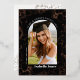 Esta elegante invitación de graduación presenta una foto en forma de arco sobre un fondo negro con motivos florales de gardenia sobre Relieve metalizado oro rosa real. Personalízalo para tus necesidades. Puedes encontrar productos coincidentes en mi tienda.