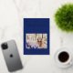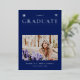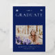 Comparte tu celebración especial con tu familia y amigos. Esta moderna tarjeta de invitación para graduación incluye elegante texto de Relieve metalizado plateado "Graduado" en un fondo azul oscuro. Puede personalizar el texto y las fotos. En mi tienda BaraBomDesign hay disponibles suministros y regalos coincidentes para la fiesta de graduación.