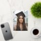 Una invitación fotográfica elegante, neutral en cuanto al género para cualquier tipo de graduación. Con una foto de todo el cuerpo en la parte delantera, con texto superpuesto y las iniciales/monograma de los grados rodeados de una corona laurel - todo en un color de Relieve metalizado de su elección. La parte posterior presenta una segunda foto más pequeña y texto de plantilla para un mensaje más largo. El diseño está disponible en diferentes diseños/orientaciones en mi tienda, así como en una versión no-Relieve metalizado.