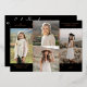 Celebra el viaje de tu graduado con esta elegante tarjeta de Invitación "Graduación después y ahora Collage de fotos". Con un diseño mínimo con cuatro fotos, mezcla recuerdos pasados y presentes, acentuados por un guión de Relieve metalizado real que dice: "Un vistazo hacia atrás, un salto hacia adelante". Personaliza con el nombre del graduado, su graduación y su futura escuela, y el año de graduación. En el reverso se pueden encontrar detalles adicionales, por lo que es la forma perfecta de compartir este hito. Diseño y diseño por © Moodthology Papery