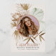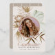 Esta moda y moderna invitación de Relieve metalizado boho/bohemia de graduación incluye tu foto con plantas tropicales/botánicas en tonos tierra. En el reverso, el fondo es marrón/beige con motivos geométricos. Personalice sus necesidades. Puedes encontrar más productos a juego en mi tienda.