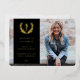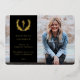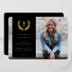 Una invitación fotográfica de graduación formal pero moderna para cualquier tipo de calificación médica. Cuenta con una foto de color con una cubierta de color y el símbolo Asclepius rodeado de una corona de laurel en un color de Relieve metalizado de su elección. El texto de la plantilla para los detalles del graduado también está presionado por Relieve metalizado y es completamente personalizable, por lo que se puede cambiar el tamaño del tipo de letra, el estilo y la ubicación. La parte posterior presenta un fondo de color sólido y un texto de plantilla para un mensaje más largo. Si prefiere no incluir texto en la parte posterior, sólo debe eliminarlo antes de realizar el pedido. Si prefiere una foto en la parte posterior de la tarjeta, elimine el fondo coloreado y el texto de la plantilla y cargue su propia foto. El diseño está disponible en otros colores y con diseños para cualificaciones médicas específicas en mi tienda.
