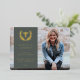Una invitación fotográfica de graduación formal pero moderna para cualquier tipo de calificación médica. Presenta una foto de purga completa con un overlay color y el símbolo caduceus rodeado de una corona laurel en un color Relieve metalizado de su elección. El texto de la plantilla para los detalles del graduado también está presionado por Relieve metalizado y es completamente personalizable, por lo que se puede cambiar el tamaño del tipo de letra, el estilo y la ubicación. La parte posterior presenta un fondo de color sólido y un texto de plantilla para un mensaje más largo. Si prefiere no incluir texto en la parte posterior, sólo debe eliminarlo antes de realizar el pedido. Si prefiere una foto en la parte posterior de la tarjeta, elimine el fondo coloreado y el texto de la plantilla y cargue su propia foto. El diseño está disponible en otros colores y con diseños para cualificaciones médicas específicas en mi tienda.