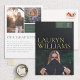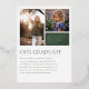 Esta moderna invitación de graduación presenta una única foto horizontal en la parte inferior acentuada por un tipo grande con el nombre del graduado en Relieve metalizado de oro real. El nombre de la escuela y el año de graduación se destacan en la parte superior de la invitación. Esta invitación de graduación tiene un aspecto profesional y de negocios, perfecto para resaltar los éxitos del graduado. El fondo negro añade sofisticación a este diseño de invitación de graduación. La parte posterior de la invitación contiene dos fotos adicionales que se pueden usar para mostrar fotos de la niñez del graduado, junto con un espacio para un mensaje más largo. El color del acento se puede ajustar para que coincida con los colores de la escuela.