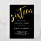 invitación de cumpleaños simple y elegante, escrita con letras de oro. Perfecto para los dieciséis años