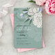 Este elegante diseño de boda en verde salvia se crea para parejas que valoran las flores atemporales y el lujo refinado. Las suaves peonías blancas y los delicados detalles botánicos se combinan con auténtico foil premium, añadiendo una textura sutil en relieve y un acabado luminoso que se siente verdaderamente especial.