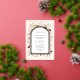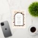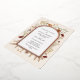 Flores y hierbas inspiradas en boho rodean un borde de papel de aluminio real y espacio para incluir todos los detalles de su boda. Su elección de papel de aluminio de oro rosa, oro o plata para el borde del arco. Cambie fácilmente los colores de fondo para diferentes estaciones o temas.