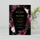 Celebre a la futura novia con una ducha de novia elegantemente espeluznante adecuada para alguien que ama Halloween o una estética gótica oscura y melancólica. Este diseño presenta un marco de ataúd con murciélagos de acuarela y rosas rojas profundas.