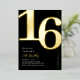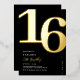 Celebra tu cumpleaños número 16 con sofisticación y estilo con nuestras invitaciones de fiesta de cumpleaños con papel de aluminio real en negro y dorado. Destacan un elegante y llamativo '16' en una fuente serif grande y negrita que seguramente impresionará a tus invitados. Lo que es aún mejor es la plantilla de invitación moderna y fácil de personalizar que te permite hacer que estas tarjetas de Sweet Sixteen sean verdaderamente únicas para ti. ¡Es el primer paso hacia una fiesta inolvidable!