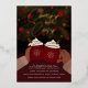 Esta invitación festiva incluye un ilustracion de dos manos con tazas rojas de copos de nieve de cacao caliente apiladas con crema delante de un árbol de Navidad en un esquema de color rojo, dorado y borgoña. El título dice "cómodo y acogedor" pero se puede cambiar a cualquier cosa para reflejar tu evento. Esto sería perfecto para una noche acogedora en fiestas de vacaciones, fiesta de cacao caliente, chicas festivos en la noche o fiesta de dormir Navidades.