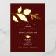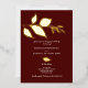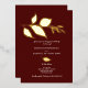 Moderno pero elegante. Esta invitación a la fiesta de compromiso de Borgoña enmarca los detalles de tu celebración con un borde de hojas de Relieve metalizado de oro sobre un fondo sólido de marrón o borgoña. Los detalles del evento se establecen en un tipo sans serif y script simple. Los colores se pueden personalizar para adaptarlos a su tema de celebración. Para ver más caídas de otoño invitamos a suites como esta visita Do Tell A Belle on Zazzle en www.zazzle.com/dotellabelle