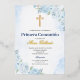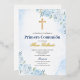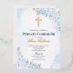 Con Relieve Metalizado Invitación española de Blue Floral Bautizo