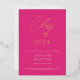 Elegante y sobria, esta invitación de graduación es moderna y sencilla, pero sofisticada, con su fondo rosa puro y su cremoso texto blanco. El tipo de letra del título escrito a mano es un Relieve metalizado oro real. Anuncie su logro con clase y elegancia. Creado por Simply Farmhouse Press.