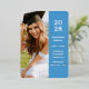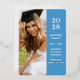 Nuestra moderna invitación de graduación de Relieve metalizado azul cuenta con un atractivo diseño de año de clase. Añade la foto, el nombre y la escuela de tu graduado.