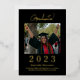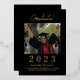 2023 invitación moderna de graduación con Relieve metalizado de oro. Hay un mensaje personalizado en la parte inferior sobre el graduado, ¡y un marcador de posición para tu foto especial! Las fuentes son personalizable.