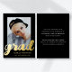 Moderna Invitación de Graduación de Fotografías de Invitación a Relieve metalizado dorado Negro. Personalízalo con tus fotos y el nombre del graduado, el nombre de la escuela y el año de graduación. Reemplace el texto de información del gráfico por la parte posterior con sus detalles o escriba su propio texto personalizado. Una moderna y elegante tarjeta de invitación fotográfica de graduación con texto de Relieve metalizado de oro real. Una manera encantadora de compartir tus logros de la secundaria o la universidad con tu familia y amigos.