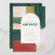 Con hermosos trazos abstractos de pinceladas y un arco de moda que enmarca los detalles de tu fiesta. La paleta de colores moderna y los acentos dorados hacen que esta invitación tenga un sentimiento vintage con un toque moderno. Los tonos clásicos de la tierra de un impresionante tono cobre y verde oscuro son perfectos para las fiestas. La Navidad es para darse un festín, y las próximas fiestas te darán muchas oportunidades de divertirte.