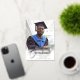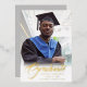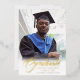 Elegantes tarjetas de invitación de graduación de Relieve metalizado dorado, con elegante escritura caligráfica con texto moderno en Relieve metalizado real (opciones de color son oro, plata y rosa) y tu foto de graduación. La parte posterior de la tarjeta ofrece espacios de texto personalizados para obtener información sobre la graduación o puede reformularse para convertir la tarjeta en una invitación para una fiesta de graduación. Escritura en negro sobre gris plateado claro en la parte posterior de la tarjeta o personalizar fácilmente el fondo a un color de su elección. Para ver más artículos como este, visita mi tienda aquí en "www.Zazzle.com/LakeViewCardCo". ¡Gracias