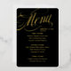 Impresionante, elegante titular de menú que hace que la fiesta de la comida comience. Todo el texto en hoja real, con su elección de oro, plata o rosa oro.
