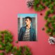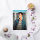 Tarjeta de invitación de graduación moderna con un diseño simple y masculino con "Graduado" en tipografía en negrita junto con el nombre del graduado, año y escuela sobre su foto vertical favorita de sangrado completo. Todo el texto del frente está en Relieve metalizado oro real. El reverso tiene una imagen cuadrada con su mensaje personal debajo en una fuente serif azul marino sobre un fondo blanco.