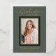 Bellamente elegantes tarjetas de invitación de graduación de 1 foto. Con texto moderno con caligrafía en su elección de Relieve metalizado oro, plata o rosa. Su foto también está muy bien bordeada en un guarnecido doble de Relieve metalizado. El diseño se complementa con un fondo de tonos verde salado. La parte posterior de la tarjeta ofrece un espacio de texto de invitación personalizado para ese graduado especial. Para ver más artículos como este, visita mi tienda aquí en "www.Zazzle.com/LakeViewCardCo". ¡Gracias