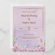 Con amor en nuestros corazones y alegría en nuestras almas, los invitamos a celebrar el comienzo de nuestra eternidad. Abierto por la suave elegancia del morado, nuestro día de bodas será un reflejo del romance, la simplicidad y los momentos apreciados. Únete a nosotros para una sincera celebración llena de amor, risas y recuerdos inolvidables. Su presencia hará que nuestro día sea aún más especial.