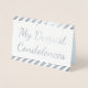 Este diseño básico y personalizado de tarjetas de felicitación de simpatía por Relieve metalizado plateado incluye el mensaje "Mis Condolencias Más Profundas" en el frente, junto con un mensaje de personalizable en el interior. Una tarjeta como esta podría ser usada tal vez para ofrecer condolencias a los parientes de alguien que ha fallecido recientemente.