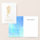 Elegante tarjeta de agradecimiento boda con temática marina, con un auténtico caballito de mar de Relieve metalizado y texto de Gracias, en la parte delantera. Personalice todo el texto que se ajuste a sus necesidades de boda.