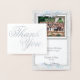 Expresa tu gratitud con estilo con esta tarjeta Starfish Beach Dream Gracias. El elegante frente muestra la tipografía de Relieve metalizado brillante "Gracias", mientras que el interior ofrece espacio para una foto grupal y un mensaje editable: "Rodeado de amor, levantado por la alegría, estamos agradecidos por cada uno de ustedes". Personalizar con su propia foto boda y la redacción para crear un conservador personal y duradero. Perfecto para bodas en la playa, esta tarjeta combina con gusto la elegancia moderna con el sentimiento más sincero.