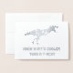 tarjeta de dinosaurio de Relieve metalizado plateado. mensaje personalizar dentro.