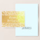 Este juguetón diseño de tarjetas de felicitación de cumpleaños de Relieve metalizado dorado incluye el mensaje "Feliz Cumpleaños" en la parte delantera, junto con un mensaje de personalizable en el interior. Se podría dar a alguien que celebrara un cumpleaños.