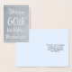 Este elegante y personalizado diseño de tarjetas de felicitación de cumpleaños de Relieve metalizado plateado incluye un mensaje como "¡Feliz cumpleaños número 60, Roderick!" en la parte delantera, donde el nombre y el número de cumpleaños pueden ser personalizados. El interior incluye un mensaje de cumpleaños que se puede personalizar. Una tarjeta de cumpleaños como esta podría ser dada para celebrar el cumpleaños de alguien.
