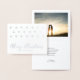 Celebra la temporada con esta elegante tarjeta de vacaciones de Navidades de Relieve metalizado plateado. Este diseño presenta una alegre gráfica navideña con un guion de moda con letras " Feliz Navidad ". El interior está diseñado con una plantilla de fotos y un mensaje personalizado.