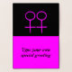 Esta increíble tarjeta de foil elegante está diseñada para lesbianas. Cuenta con dos símbolos femeninos rosados que se mantienen uno al lado del otro. El fondo es negro y hay texto rosa personalizable dentro de cada uno de los símbolos para poner nombres.