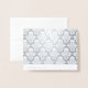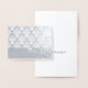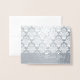 Elegante carta de agradecimiento con un patrón de damasco de Relieve metalizado plateado con agradecimiento, en la parte inferior delantera. El interior tiene un texto negro regular listo para personalizar según tus necesidades. Excelente como personalizado, pequeñas tarjetas de agradecimiento para cada día o para ocasiones especiales como cumpleaños y bodas.