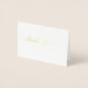 Una clásica tarjeta de agradecimiento con papel de aluminio dorado con glifos estilizados para realzar la fuente.